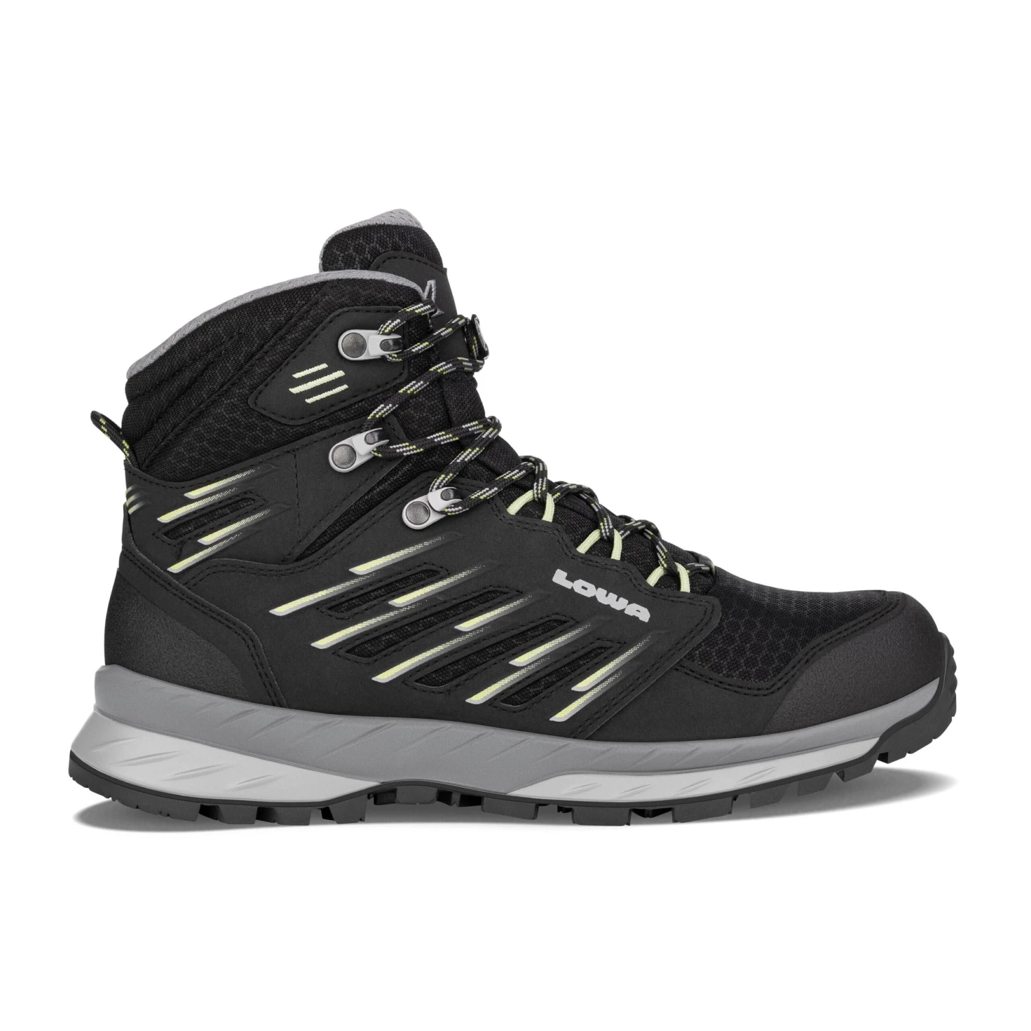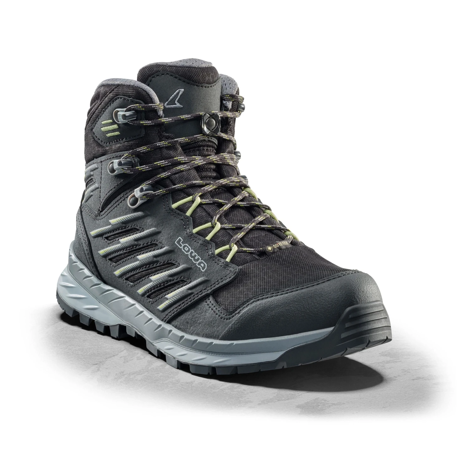 Deze Lowa Trek Evo GTX Mid bergschoenen voor dames zijn in het bijzonder geschikt voor meerdaagse wandeltochten, bergwandeltochten of stevige dagtochten. Het Gore-Tex binnenwerk maakt de schoenen waterdicht en winddicht, maar het ademend vermogen blijft behouden. De DynaPU+ tussenzool zorgt voor een hele fijne demping en een goed rebound effect. De Vibram buitenzool heeft een driehoekig profiel wat samen met het Megagrip rubber voor een optimale grip zorgt. Deze Lowa schoenen kunnen perfect op de voet worden aangepast door het tweedelige vetersysteem. Daarbij is ook nog de X-Lacing technologie toegepast om de tong van de schoenen goed te kunnen fixeren en een ideale drukverdeling.