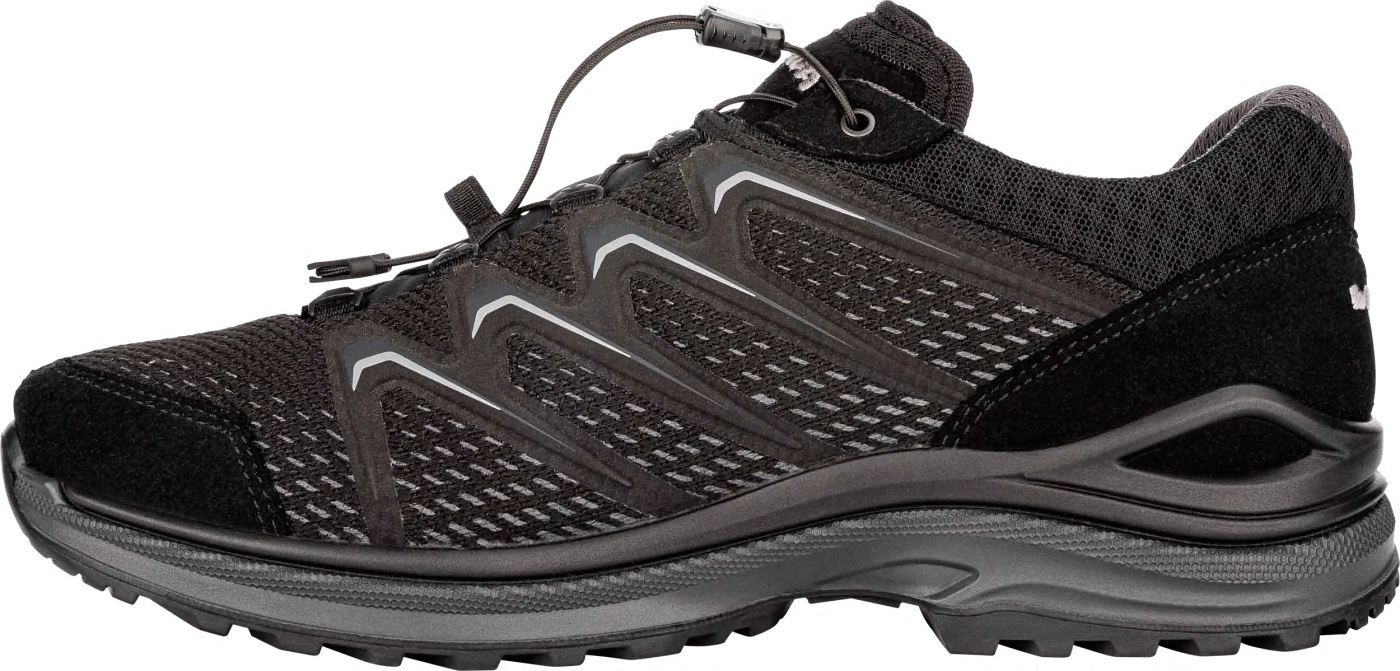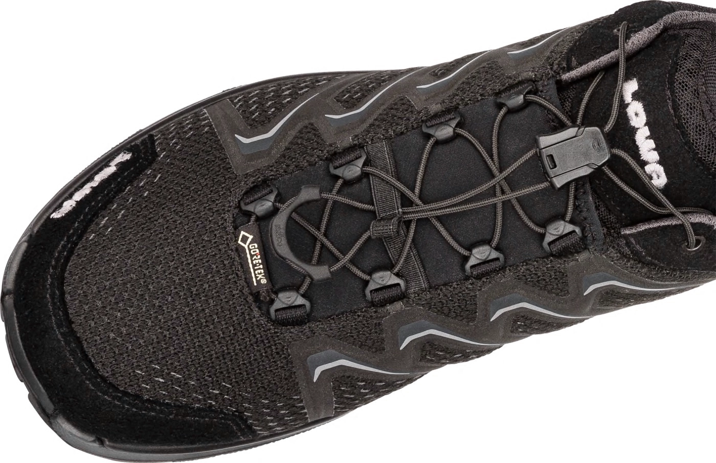 De Maddox is een goed ondersteunende trailrunning schoen van Lowa die zorgt dat u langer door kunt blijven lopen en comfortabel oneffen paden kunt verkennen. Deze handige schoen heeft een bovenzijde van textiel met daaronder een membraan van Gore-Tex materiaal waardoor de schoen waterdicht en ademend wordt. Zo kan er geen water van buiten de schoen in, maar zal (transpiratie)vocht wel uit de schoen worden gehaald. Dit betekent dat u door plassen en de regen kunt rennen zonder dat uw voeten nat worden, terwijl ze ook langer fris zullen blijven. De schoen heeft een frame dat zorgt voor een erg goede ondersteuning van de voet zodat u ook goed kunnen lopen op heuvelachtig terrein. Om te zorgen dat deze schoen snel de goede pasvorm heeft en goed vast zal zitten heeft deze schoen een snelsluiting. Daarnaast zorgt de schoen ook dat schokken goed ondersteund zullen worden. De buitenzool van deze schoen is de rubberen Enduro Evo en deze slijtvaste zool zorgt voor een optimale grip, ook op glad terrein.