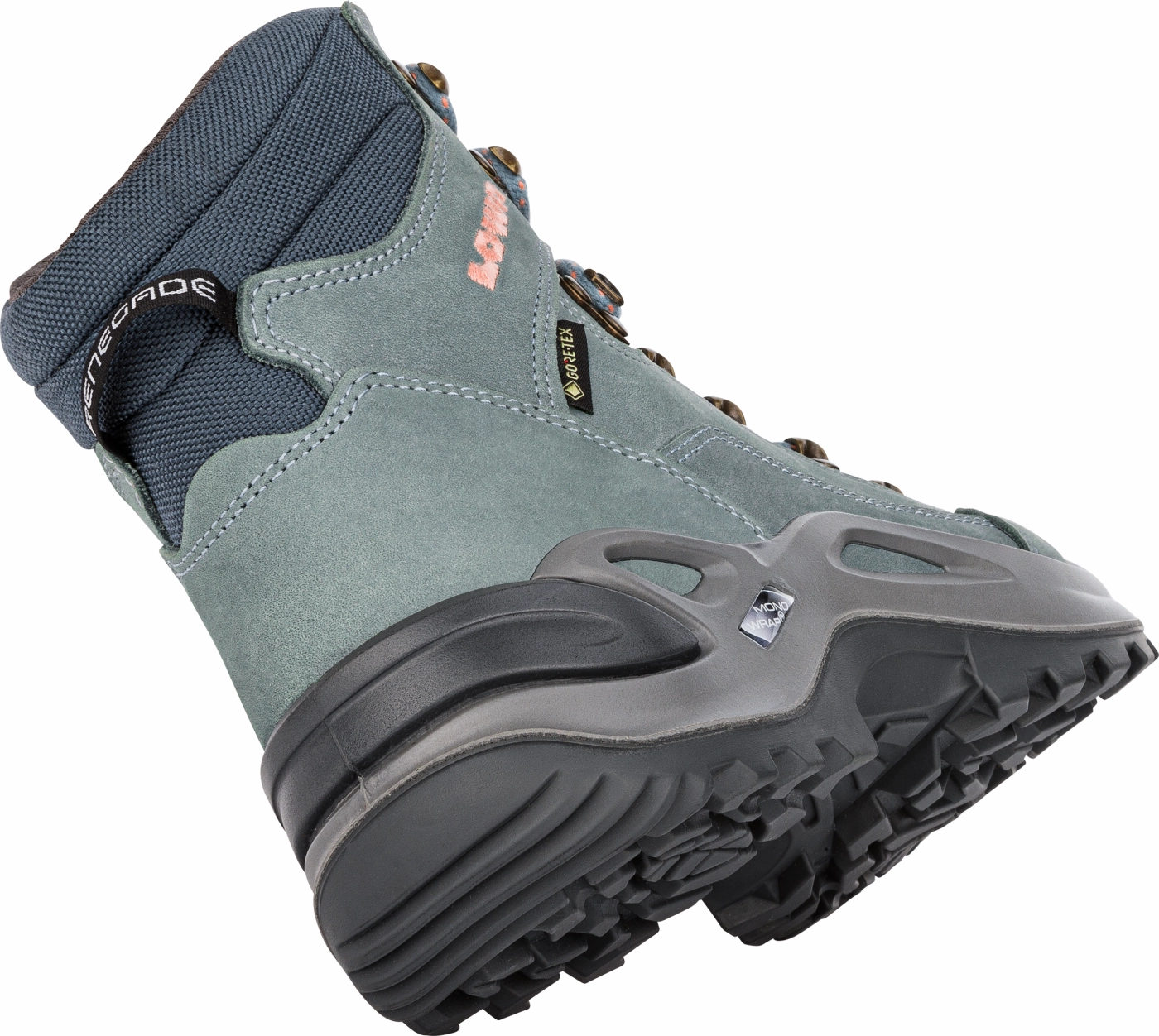 De middenzool van de Renegade GTX in de vorm van het Lowa Monowrap®-frame zorgt voor optimaal comfort. Met dit frame wordt de voet comfortabel omvat en ondersteund op oneffenheden in de ondergrond en daarnaast is de zoolconstructie ook nog eens licht verhoogd.