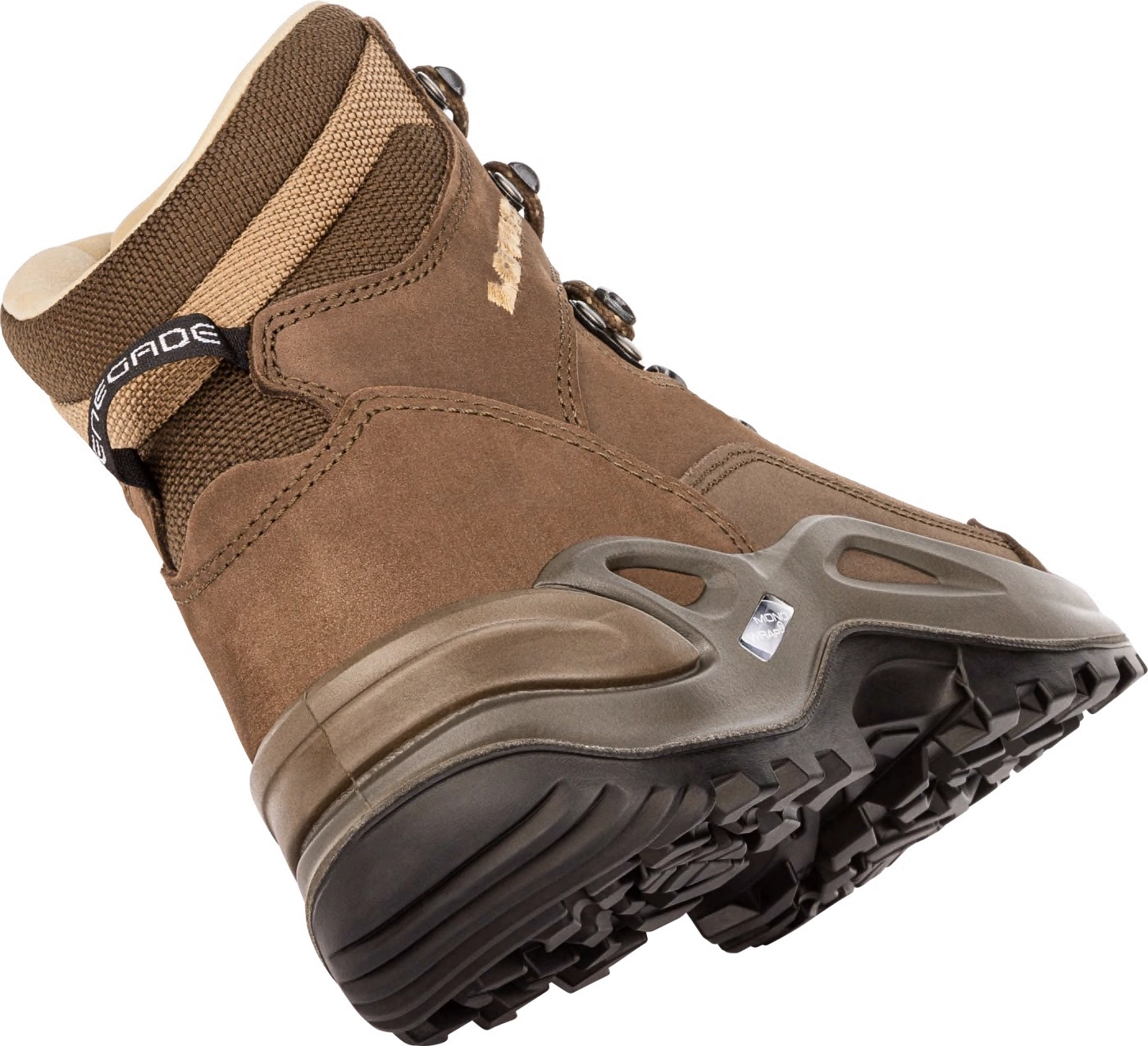 De middenzool van de Renegade GTX in de vorm van het Lowa Monowrap®-frame zorgt voor optimaal comfort. Met dit frame wordt de voet comfortabel omvat en ondersteund op oneffenheden in de ondergrond en daarnaast is de zoolconstructie ook nog eens licht verhoogd.
