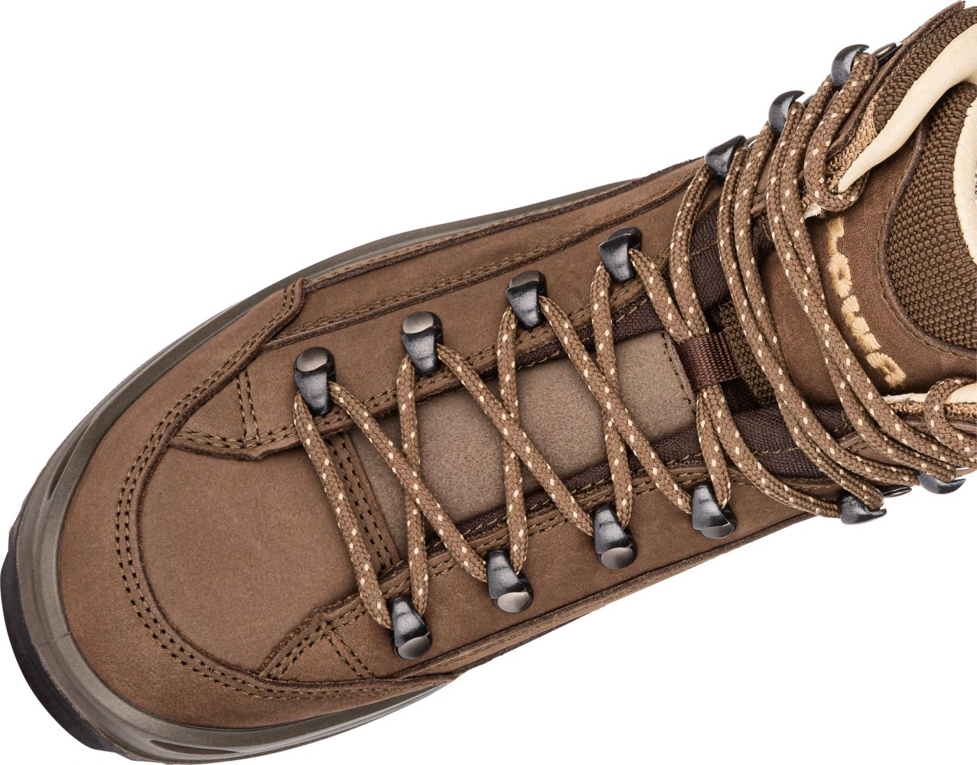 Doordat de Renegade GTX een tweedelige vetersluiting heeft, kunnen de voorvoet en de schacht afzonderlijk van elkaar stevig worden vastgemaakt. Hierdoor kan de schoen individueel worden aangepast aan de anatomie van uw voet en kunt u ze op verschillende manieren veteren voor bergop en bergaf lopen.